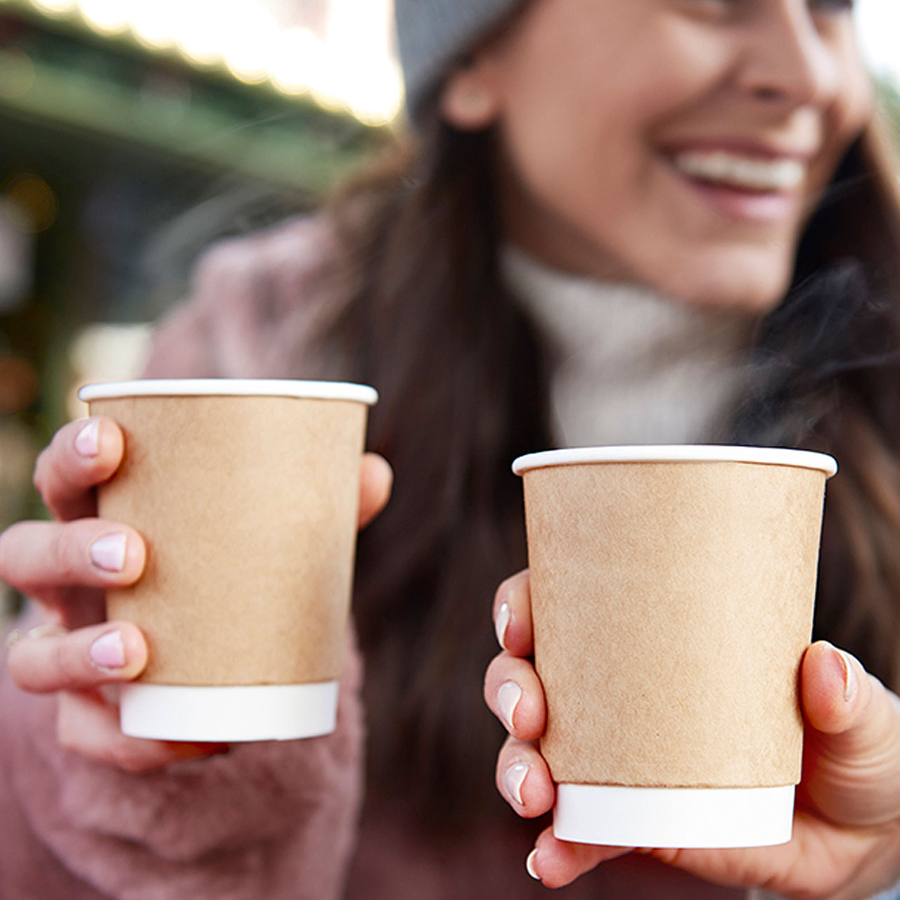 Pappbecher doppelwandig für Heißgetränke, natur/weiß