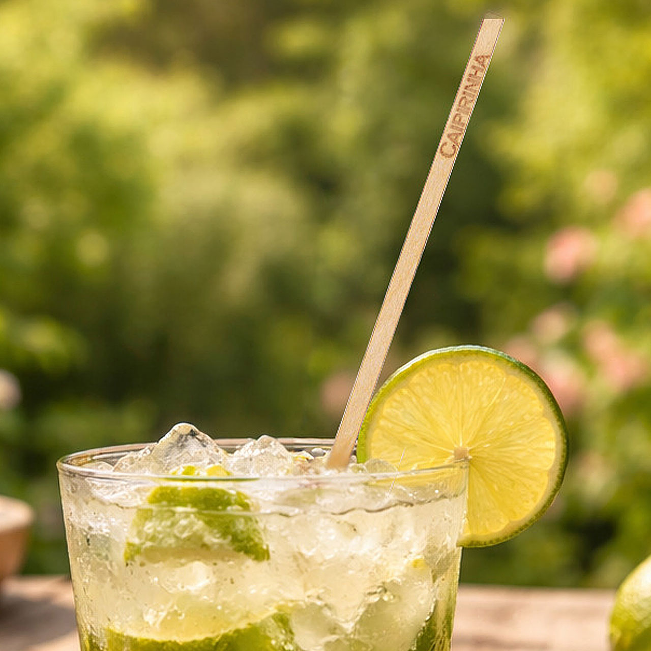 Tolle Dekoration im Caipi. Der Holz-Rührstab ist schon durch sein Material ein Hingucker. Beim näheren Hinschauen aber wird mit der Aufschrift CAIPIRINHA, noch ein kleiner Gag mit serviert. CAIPIRINHA ist im oberen Ende des Holz-Rührstab eingebrannt., der untere Teil ist als kleine Scheibe zum Umrühren von Eis oder Früchten im Glas geformt. Egal, ob Cocktailparty, Geburtstag oder ein Männerabend mit diesem Holz-Rührstab legen sie den Grundstein für einen rundum perfekten Abend. Mit seinen 23 cm Länge ist der Holz-Rührstab genau für Caipirinha-Gläser geeignet. Die Holz-Rührstäbe sind als 18er Packung erhältlich.