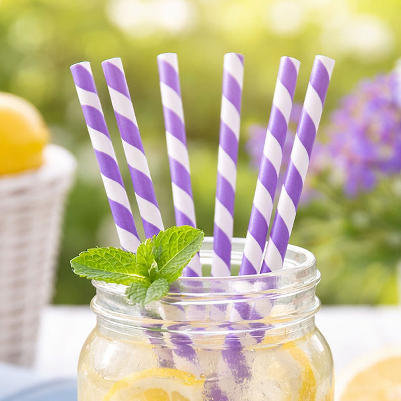 Papier Trinkhalme Jumbo Ø 0,8 x 25cm, Streifen lila-weiß
