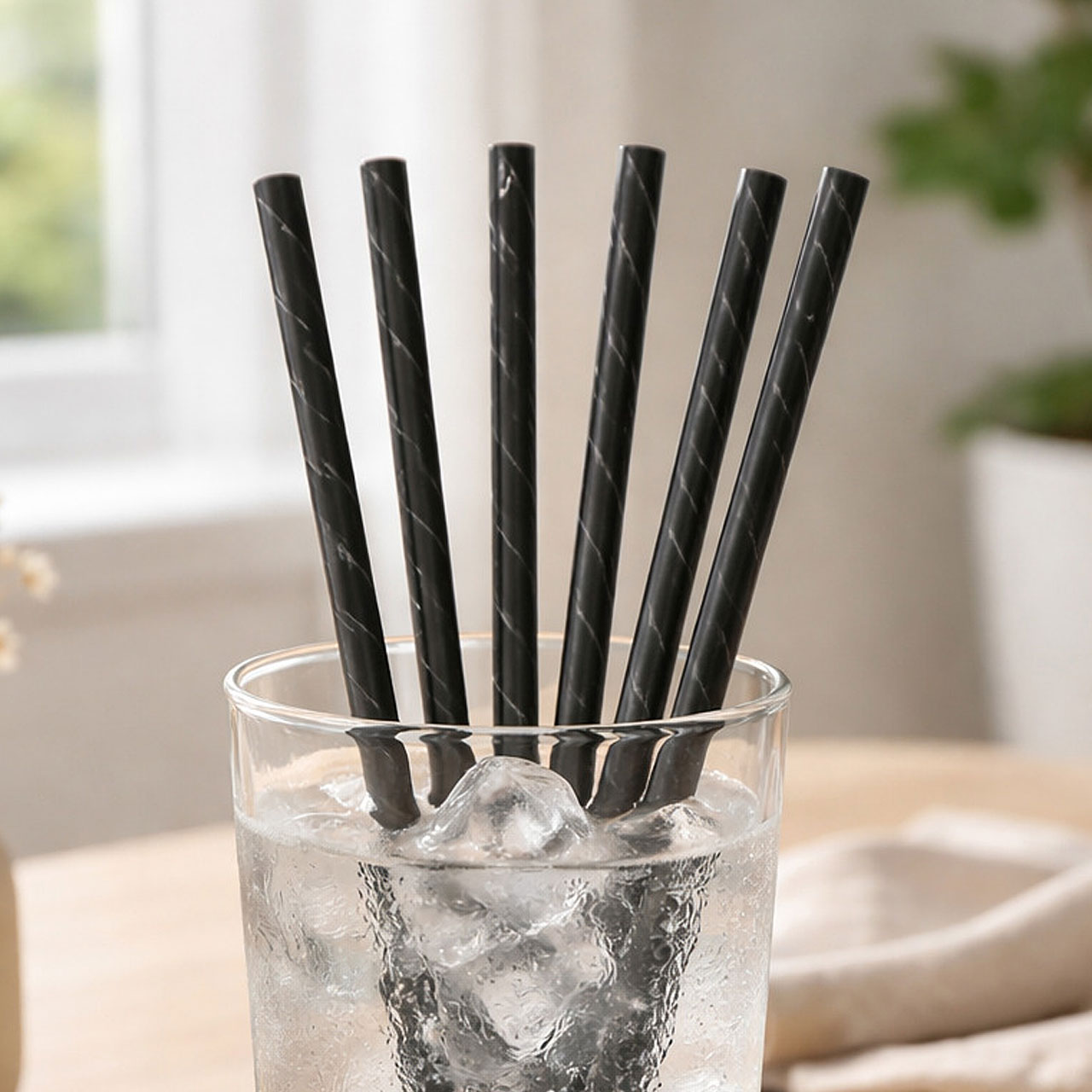 Papier Trinkhalme Ø 0,6 x 20cm, schwarz