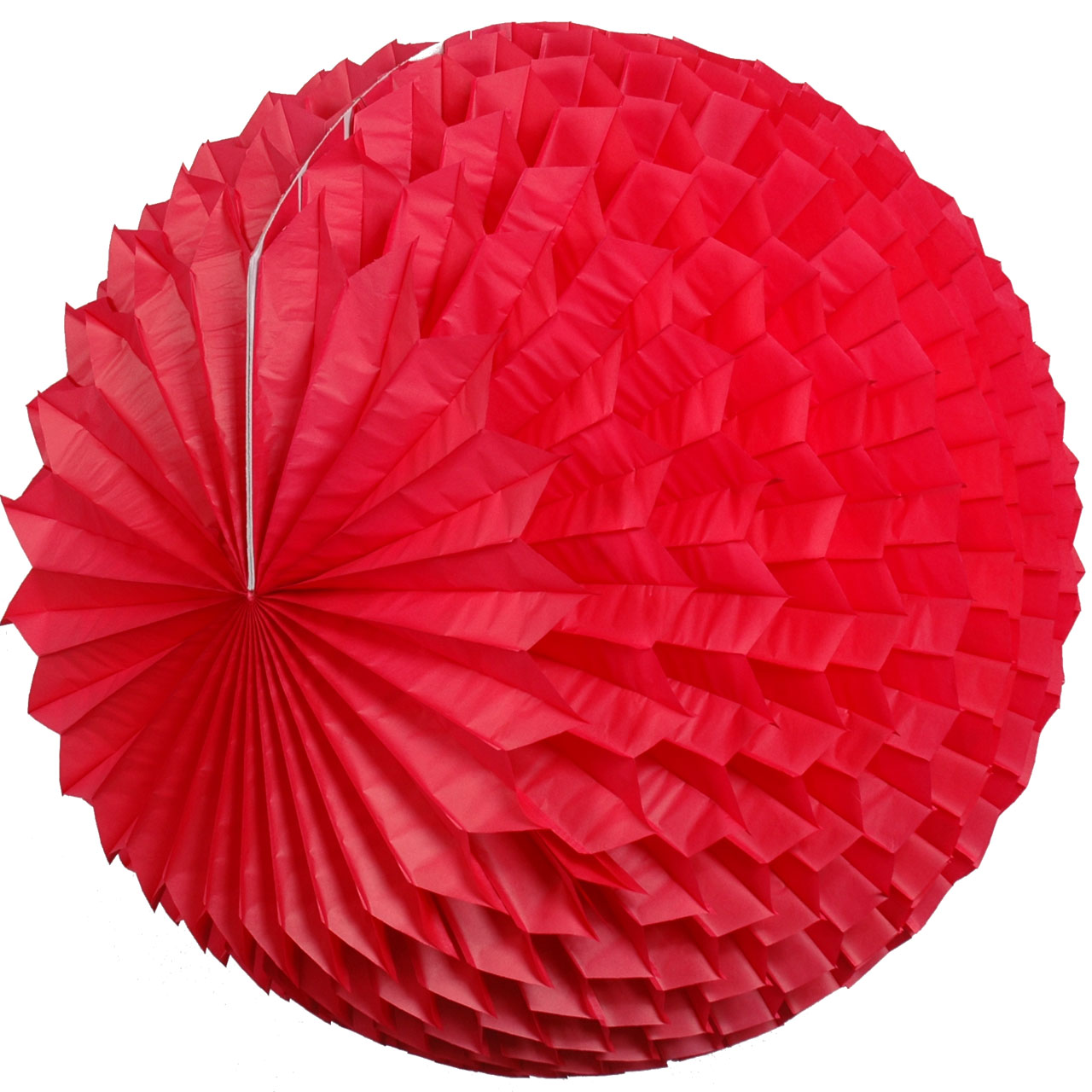 Uni-Rot. Schöne Raumdekoration im Partyraum, auf dem Saal oder im Garten. Die bunten dreidimensionalen Farbtupfer bringen Atmosphäre und Feststimmung. Einfach von der Decke schweben lassen. Unser Tipp: verspannen Sie zunächst ein oder mehrere "Trägerseile" im Raum, an denen Sie dann die Wabenbälle festknoten. So entstehen tolle, große Dekorationen mit riesiger Raumwirkung. Die Wabenbälle haben bereits eine kleine Schnur zum Aufhängen. Die Wabenbälle können nach dem Fest platzsparend zusammengeklappt werden und sich bis zur nächsten Party flach machen.