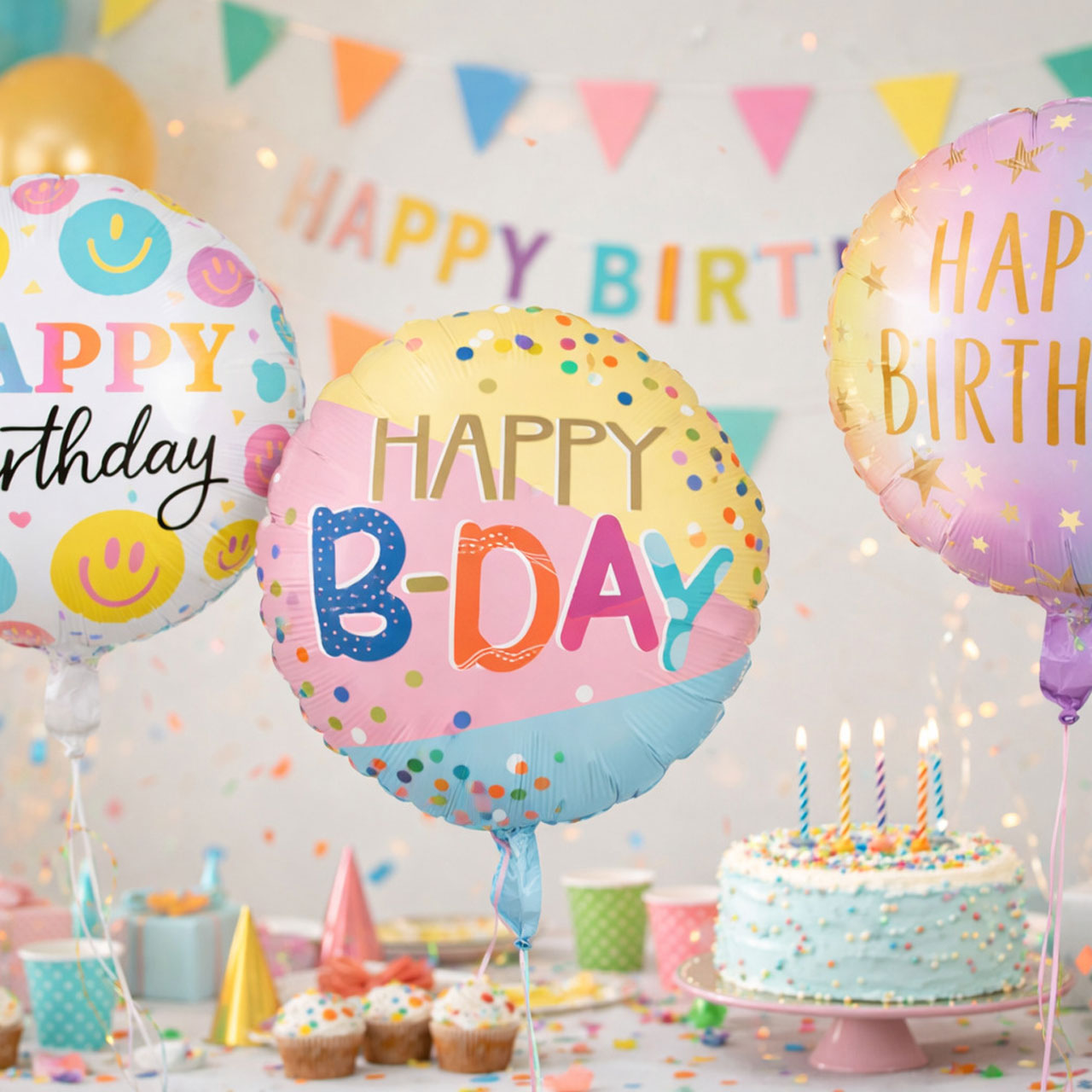 Folienballon Happy B-Day, bunt