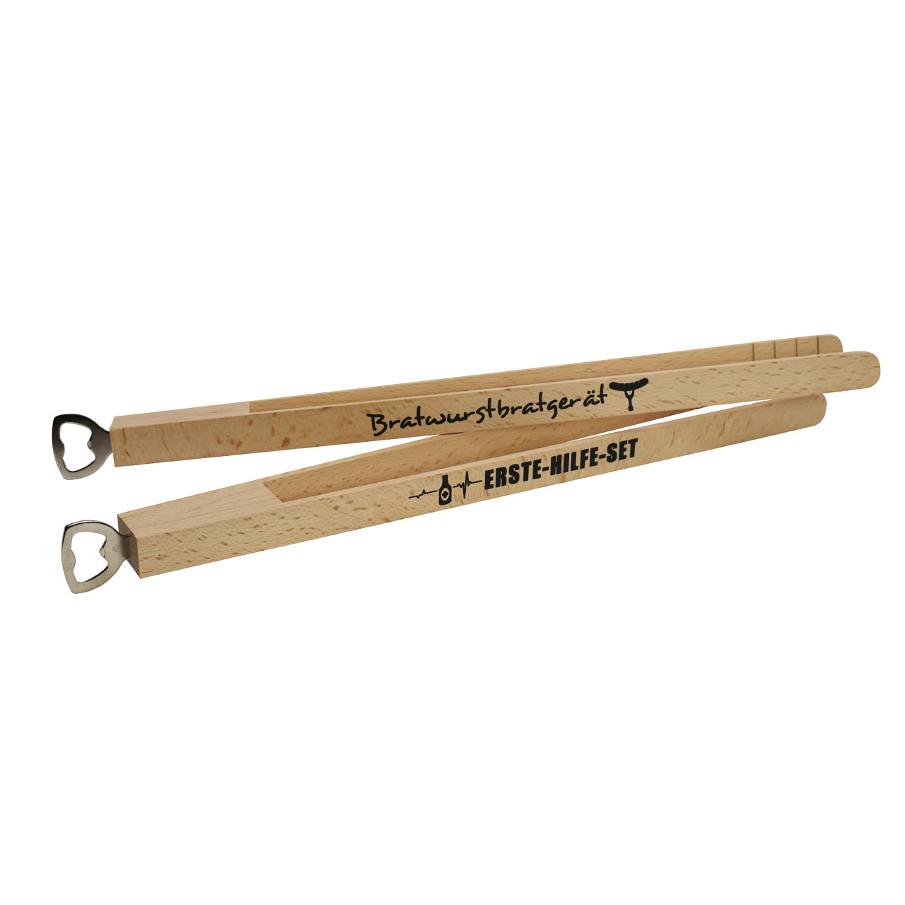 Grillzange mit Flaschenöffner BRATWURSTBRATGERÄT, natur