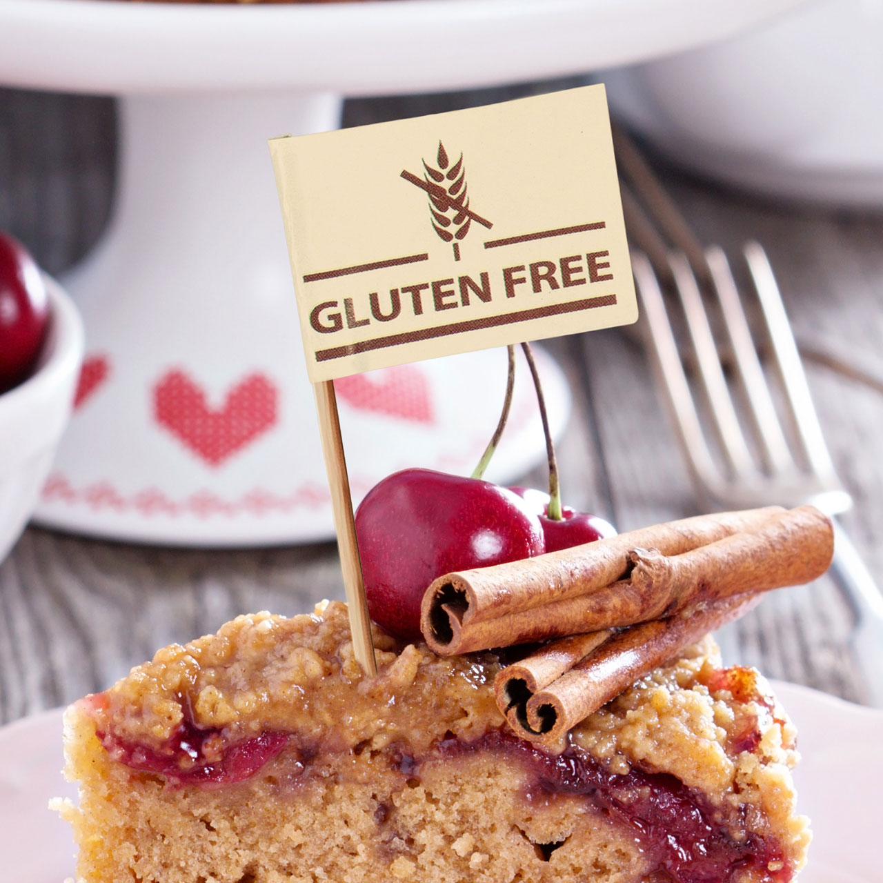 | Ausführung: | Holzspießchen mit Hinweis „Gluten Free“ |